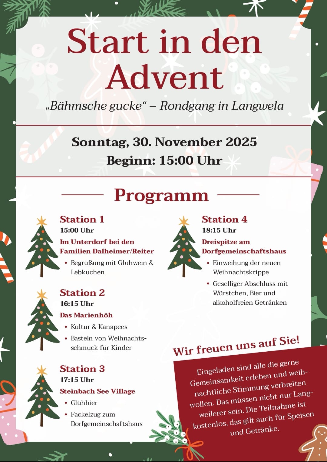 Bähmsche gucke - Rondgang in Langwela am 30.11.25 ab 15:00 Uhr * Näheres zum Programm unter "Vereine & Gruppierungen".